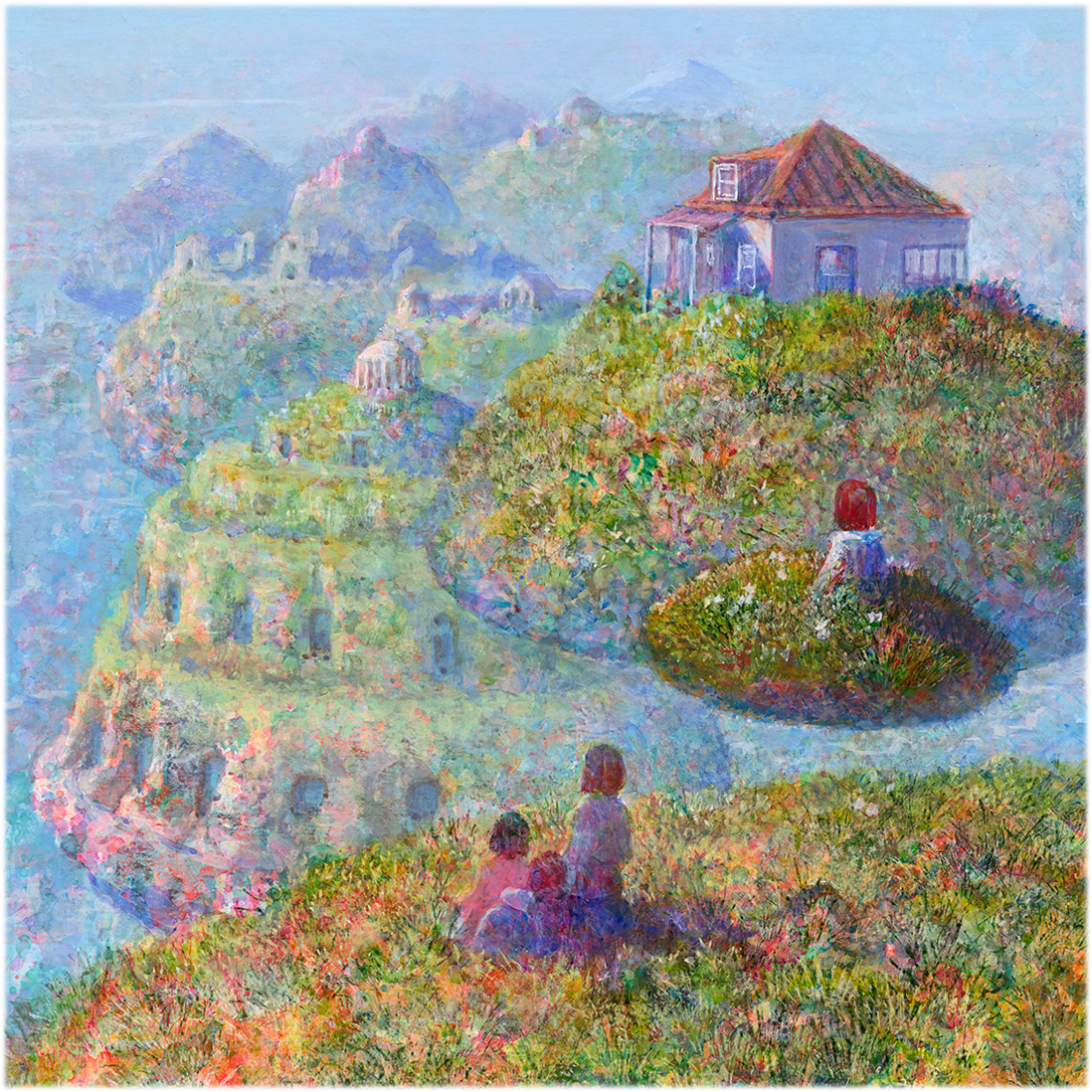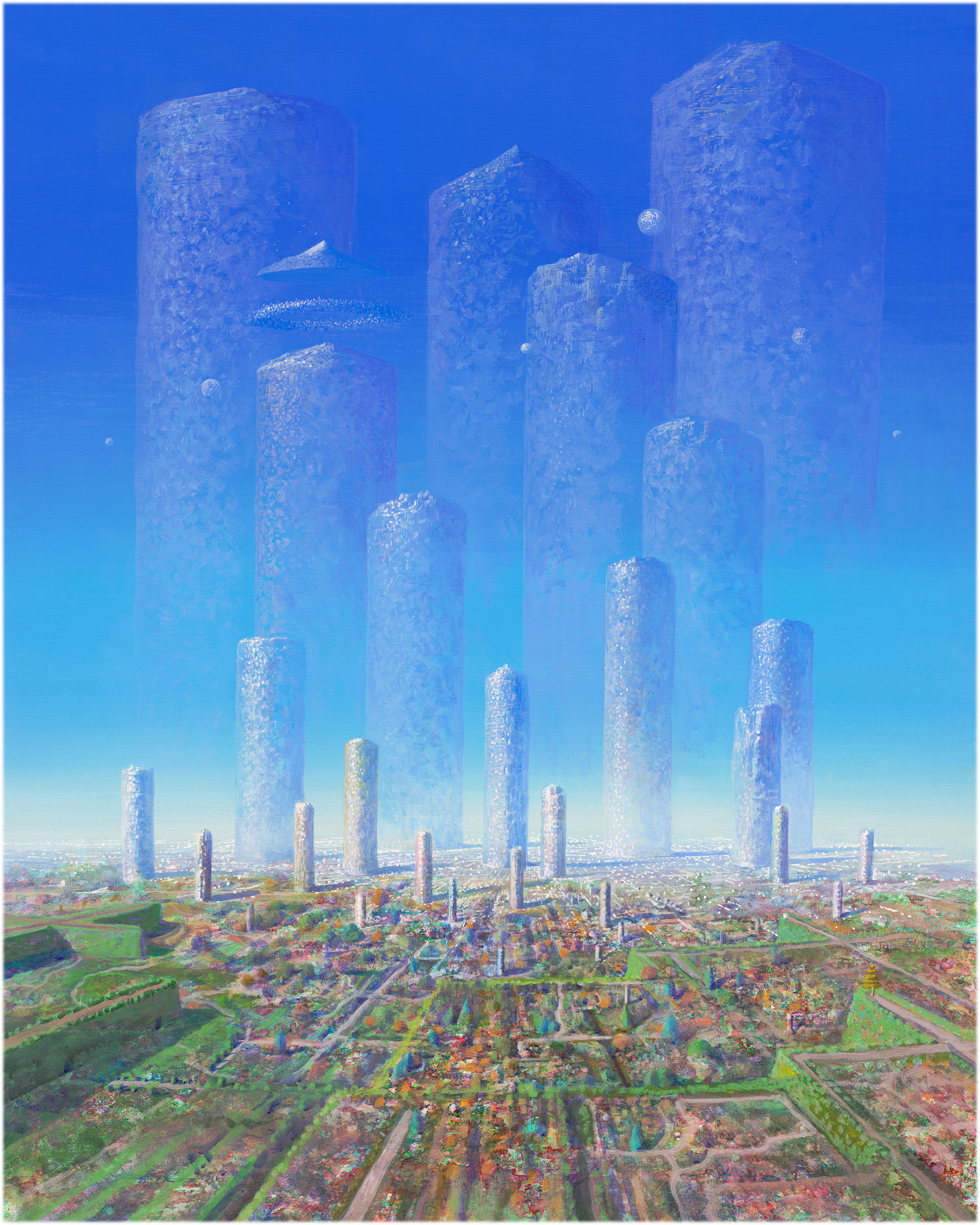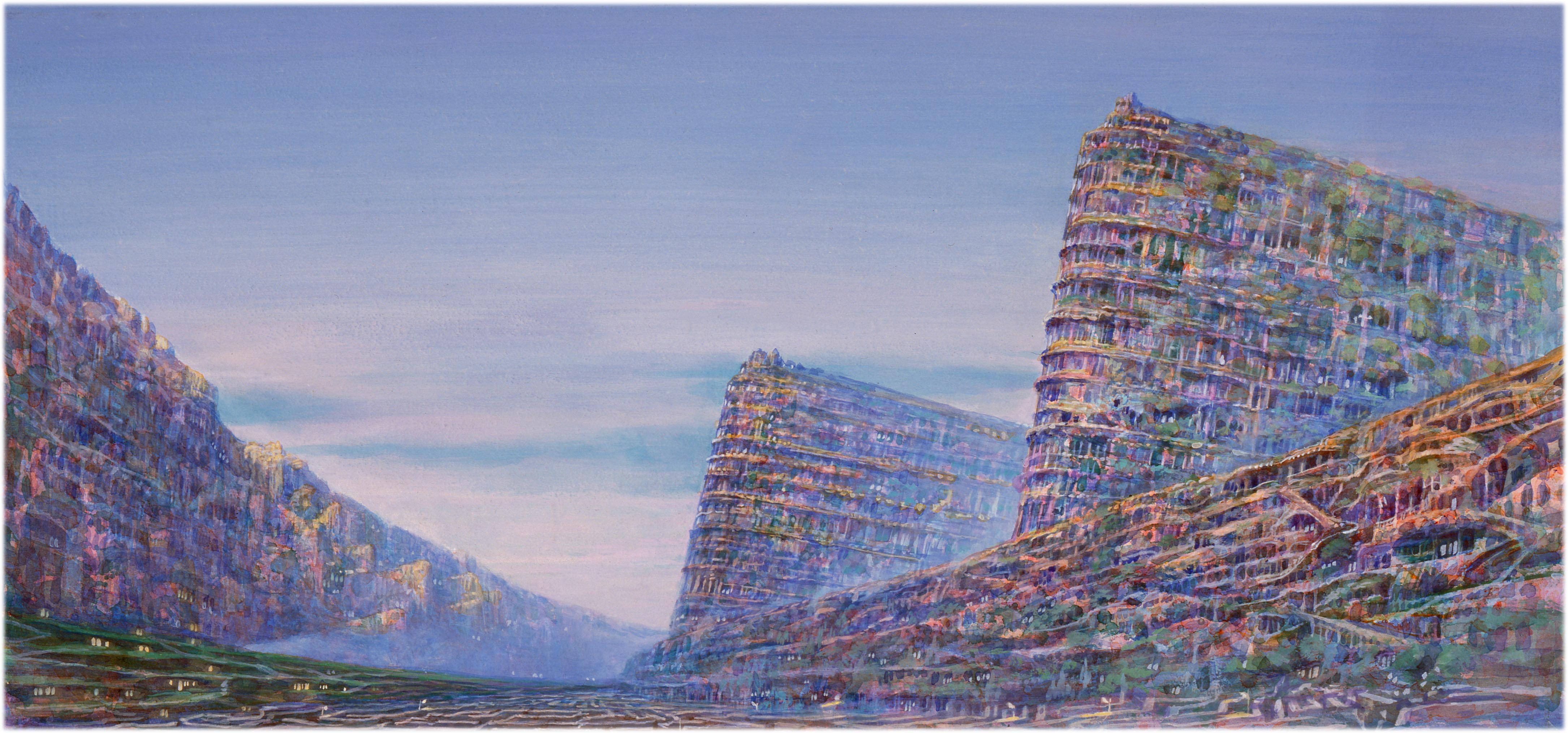 Naohisa Inoue is a Japanese painter known for his imaginary world Iblard. His dreamlike landscapes are filled with poetic atmosphere, light, and quiet wonder. Through delicate color and imaginative architecture, he invites viewers into a world between reality and fantasy. He was born in Osaka in 1948.